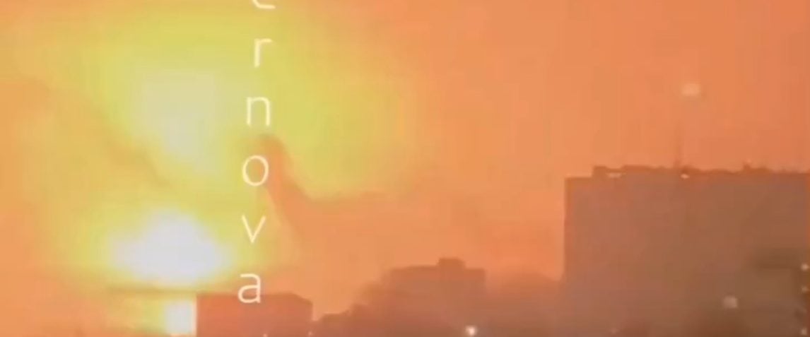 Filmklipp från attacken visar enligt uppgift en brand som bryter ut på en landningsbana nära anläggningen, uppger Kyiv Independent.