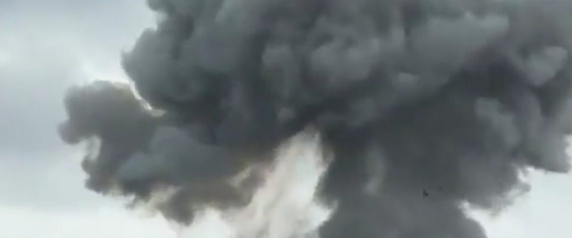 Bilder och filmklipp som cirkulerar på sociala medier visar ett stort rökmoln som stiger mot himlen.